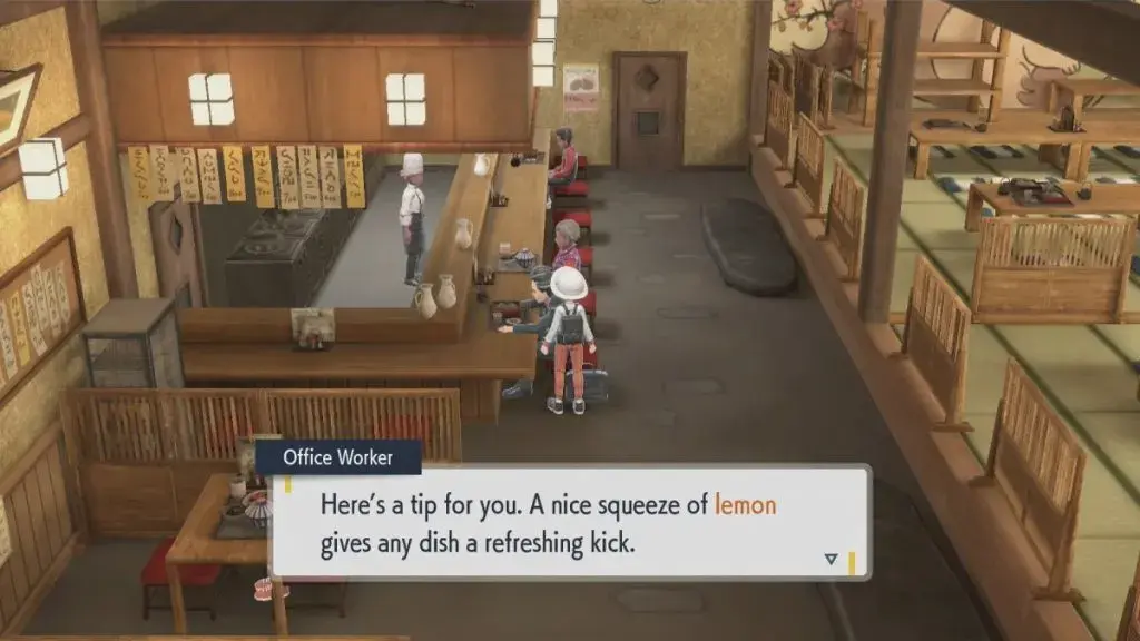 마지막으로 Treasure Eatery 안으로 들어가 바에서 식사를 하고 있는 정장 차림의 남자에게 말을 겁니다. 그는 레몬 으로 매운 음식을 좋아한다고 말할 것입니다 .