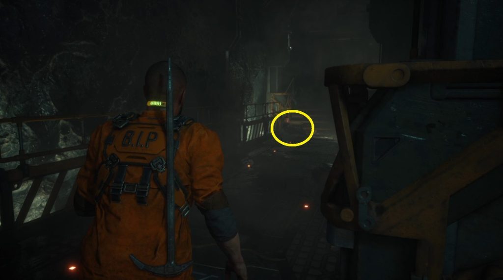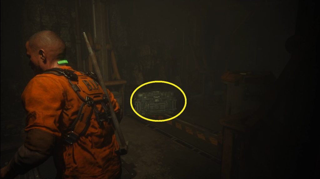 그것을 꺼내고 전리품을 위해 그것을 밟는 것을 잊지 마십시오! 벽 바로 앞에는 첫 번째 건강 주입기 가 있습니다 . 벽에 있는 상자와 상호 작용하여 귀중한 치유 아이템(1)을 받으세요. [3] /을 눌러 사용할 수 있습니다.
