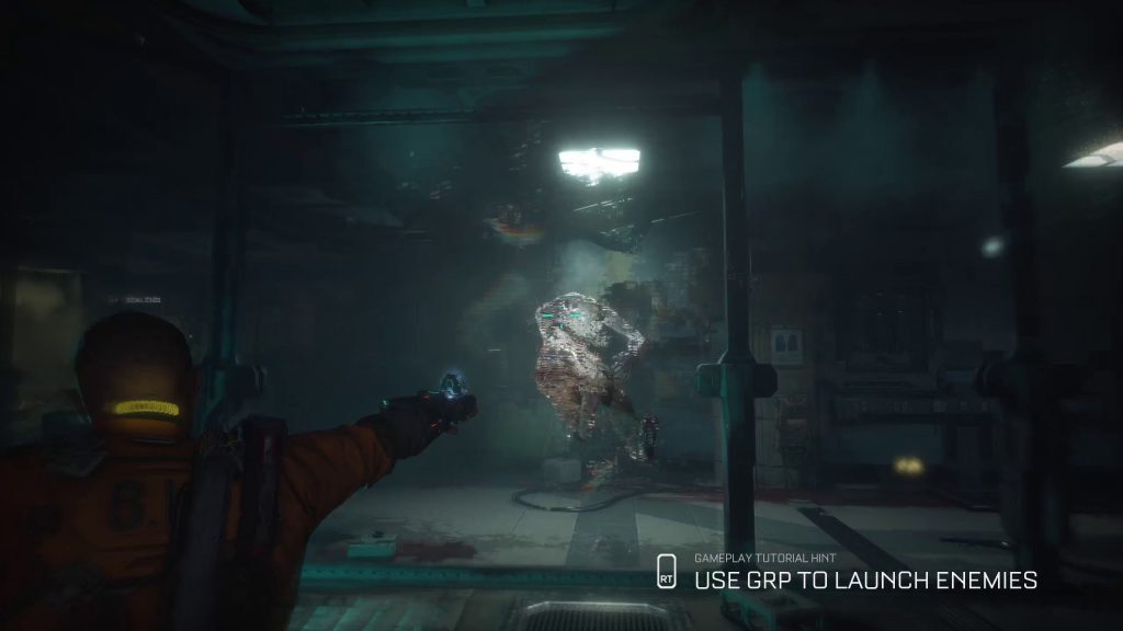 잘린 팔의 GRP 장치 . 이 장치를 사용하면 물체와 적을 조준하여 텔레키네틱 방식으로 잡을 수 있습니다(