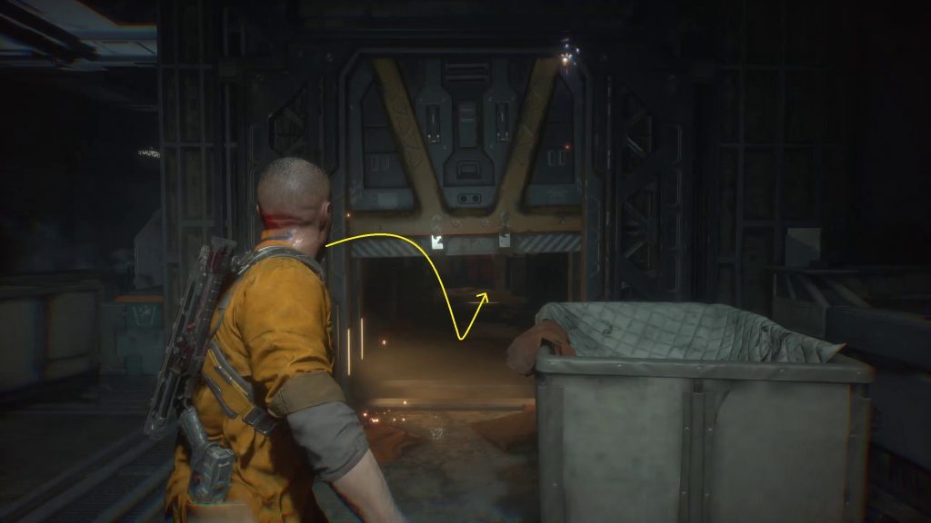 매복 후 방의 틈을 비집고 들어가면 엘리아스 포터와 재회하는 컷씬이 재생됩니다. 게임이 재생되면 자신이 있는 방에서 사물함을 약탈하고 다음 방인 보안 D505로 이동합니다.