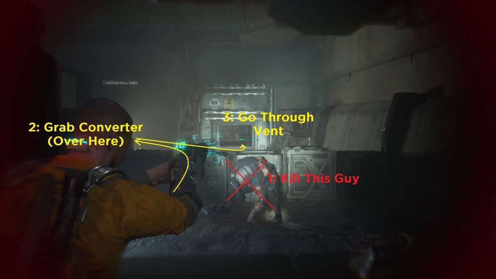 이 방 뒤쪽 근처에 또 다른 바이오파지가 있습니다. 그를 파견한 후 근처의 에너지 변환기를 잡고 근처의 통풍구를 통과하십시오.