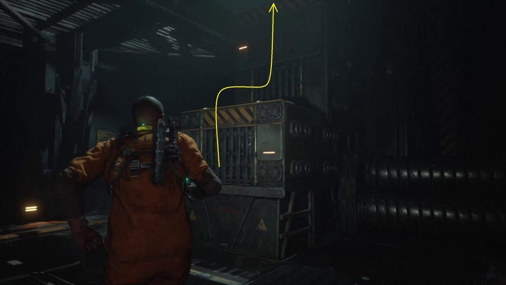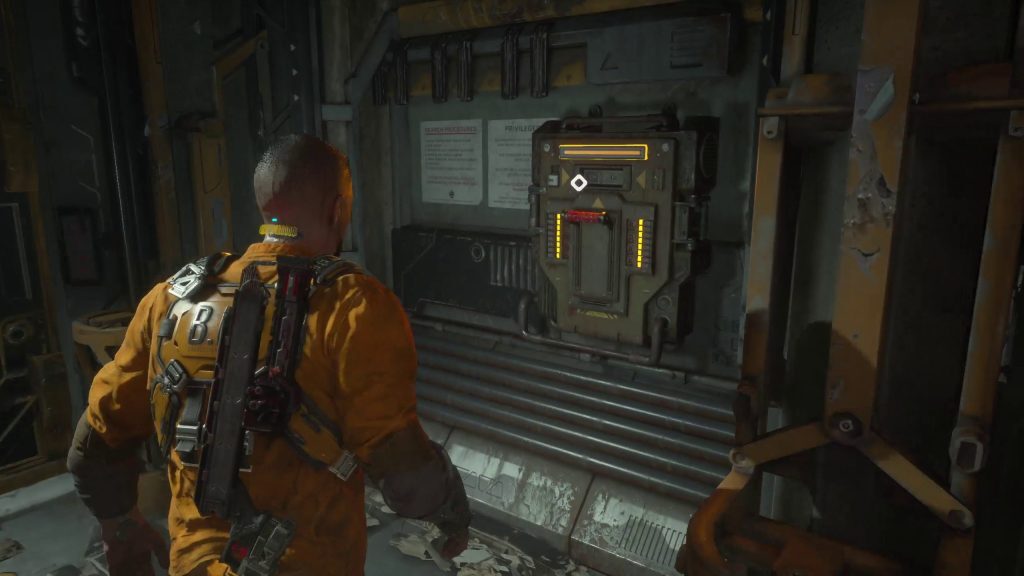 계속해서 길을 따라 승강기를 올라가면 Elias Porter와 재회하게 됩니다. 그는 찾고 있는 죄수가 있는 SHU로 가려면 곤돌라를 이용해야 한다고 알려줄 것입니다. 그를 지나서 계단으로 내려가 곤돌라에 도달하십시오. 하지만 먼저 왼쪽에 리포지(Reforge)가 있어 업그레이드, 탄약 또는