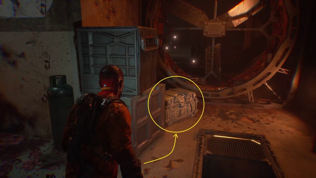 환풍구를 통과한 후에는 꽉 조일 수 있는 긴 틈을 통과할 때까지 길을 계속 따라갈 수 있습니다. 바로 오른쪽에 덮개가 있는 통풍구가 있고 GRP를 사용하여 화격자를 파괴하고 안에 있는 두 개의 상자에 접근할 수 있습니다.