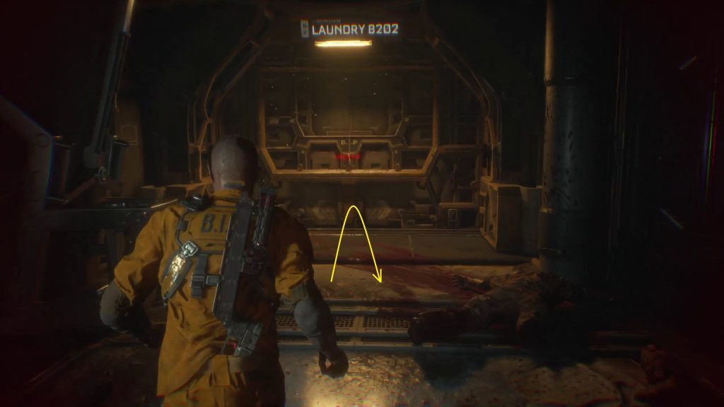 Laundry B202 문으로 돌아가서 복도를 계속 따라가세요. 더 탁 트인 공간에 도달하면 바닥에 있는 시체를 조심하세요. 이것은 실제로 살아 있는 바이오파지이며, 지나갈 때 공격할 것입니다.