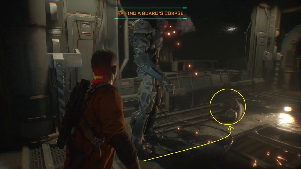 아래로 뛰어 내려 오른쪽의 잠긴 문으로 가십시오. 진행에 필요한 게이트 퓨즈가 있는 시체가 여기에 있습니다. 주우되 아직 바로 옆 문에서 사용하지 마십시오. 대신 엘리베이터에 충돌한 후 처음 들어왔던 이 방의 입구로 돌아가십시오. 아까 지나쳤던 고장난 퓨즈박스로 가서 열어보세요. 그것이 열리는 환기구를 통과한 다음 아래로 내려와서 회로도를 찾으십시오.