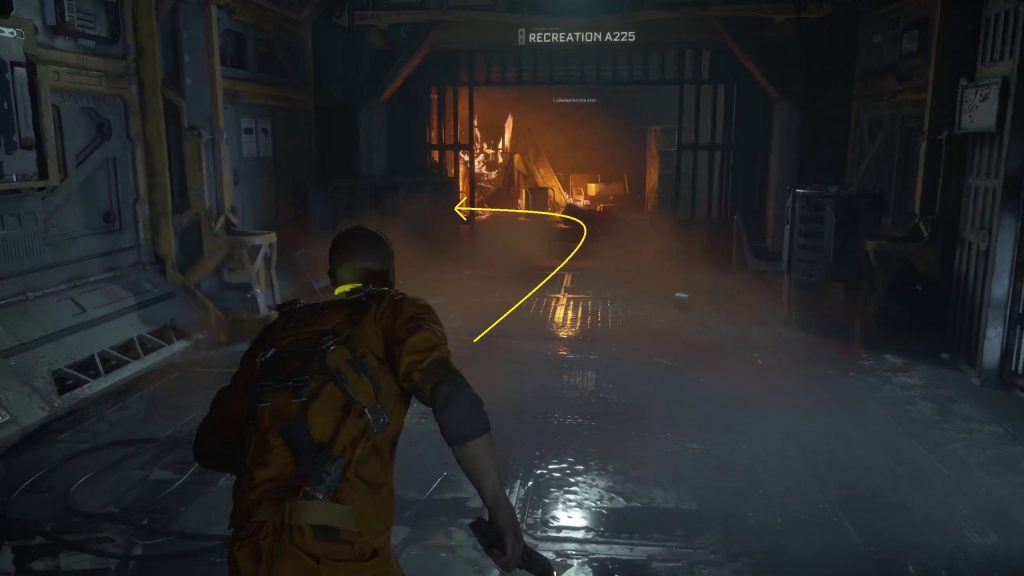 ). 이 적을 제거하려면 몇 발을 쏴야 합니다. 그런 다음 왼쪽으로 계속 이동한 다음 엘리베이터를 타고 액세스 홀 A105로 내려갑니다.