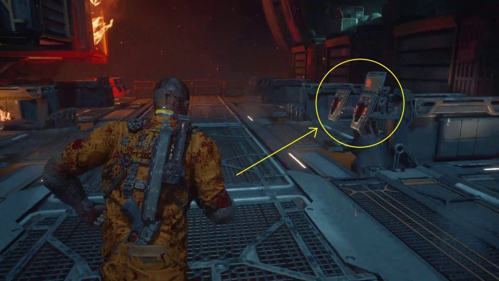 반대편에 도착하면 흩어져 있는 전리품, 특히 곧 매우 유용할 GRP 배터리 팩을 챙기세요. SHU Control D705 도어 주변의 녹색 퓨즈박스에서 퓨즈 2개를 뽑을 수 있습니다. 이 퓨즈를 가져간 다음 돌아서서 입구 근처에 쌓여 있는 상자를 찾으세요. _ DATA-BIOS를 찾을 수 있는 오른쪽에 상자 세트를 정리합니다. 그런 다음 두 개의 퓨즈를 여기에 있는 퓨즈 박스에 연결하여 SHU 전원을 켭니다. 이제 전투를 준비하십시오.