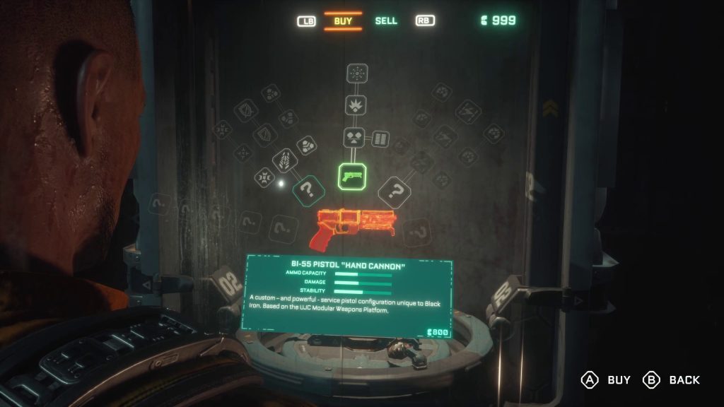 여기에서 Elias는 무기 플랫폼을 건네주고 근처 Reforge에서 자신을 무기로 만들라고 말합니다. 하지만 그러기 전에, 무기를 만들기에 충분한 크레딧과 다른 전리품을 받을 수 있는 상자를 오른쪽으로 약탈해야 합니다. 상자를 약탈했으면 Reforge 스테이션으로 이동하십시오. 사용 가능한 옵션 중 하나를 선택하고 해당 옵션을 구매해야 합니다.