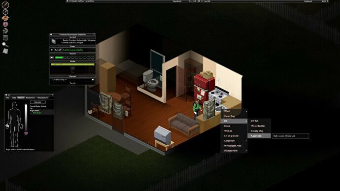 세계를 탐험하고 청소를 하면서 병, 프라이팬, 그릇, 머그잔을 찾으세요. 이 모든 것을 물을 저장하는 데 사용할 수 있으며, 이는 차단 상태에서 살아남고자 하는 경우에 필요합니다. 무한한 양을 저장할 수는 없지만 Rain Collector Barrels 구축과 같은 보다 지속 가능한 계획을 찾는 동안 시간을 벌 수 있는 막대한 비축량을 구축할 수 있습니다. 용기에 물을 채우려면 수돗물, 변기 또는 흐르는 물이 있는 다른 곳으로 가져가서 마우스 오른쪽 버튼을 클릭하여 상호 작용 메뉴를 불러온 다음 채우기를 누르십시오.