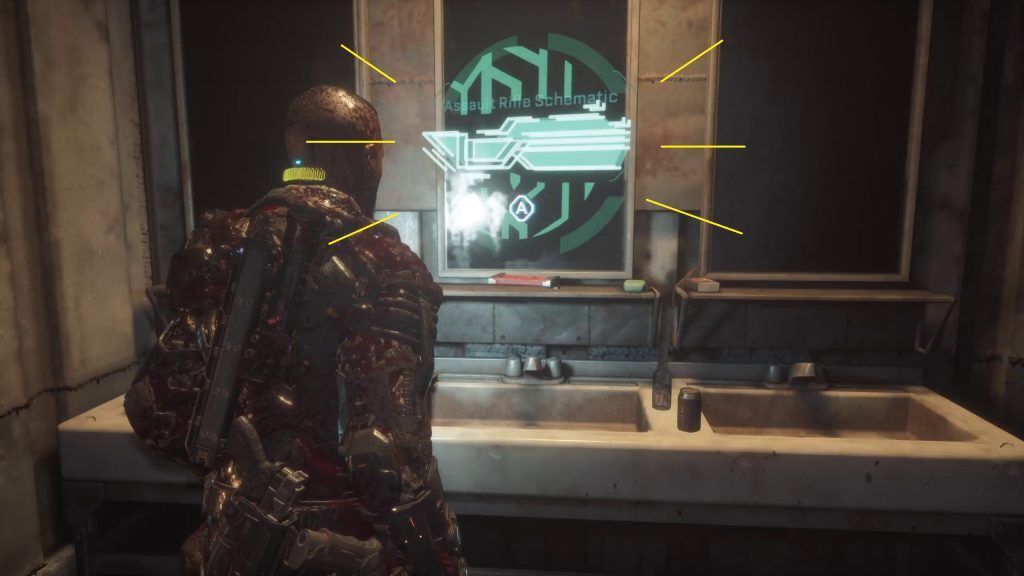 돌격소총 설계도는 챕터 7: 콜로니 초반부에서 확인할 수 있습니다. 레벨을 시작한 직후, 여러분은 마을의 중심에서 타워에 있는 Dani에 도달하기 위해 엘리베이터에 전원을 공급할 방법을 찾으려고 노력할 것입니다. 여기에서 사다리를 이용하여 "미드타운"으로 올라가야 합니다. 회로도를 찾으려면 다리를 건너 "잡화점"이라고 표시된 건물로 가십시오. 반대쪽은 제외하고 왼쪽으로 돌면 돌격소총 설계도가 있는 욕실 건물을 찾을 수 있습니다.