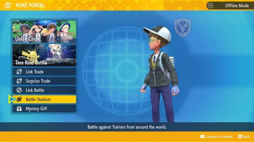 VGC 랭크 전투 및 대회를 플레이하려면 Poke Portal로 이동하여 "배틀 스타디움"을 열어 둘 중 하나를 선택하십시오.