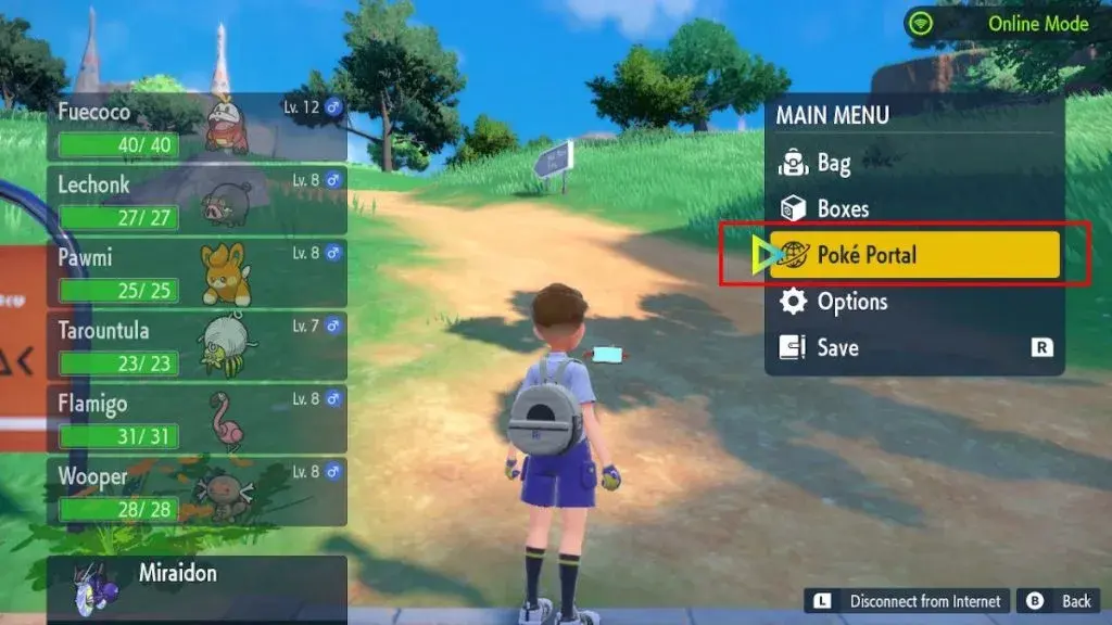 - 그런 다음 "왼쪽 스틱"으로 메뉴를 탐색하여 "Poke Portal"을 강조 표시합니다. 확인하려면 "A"를 누르십시오.