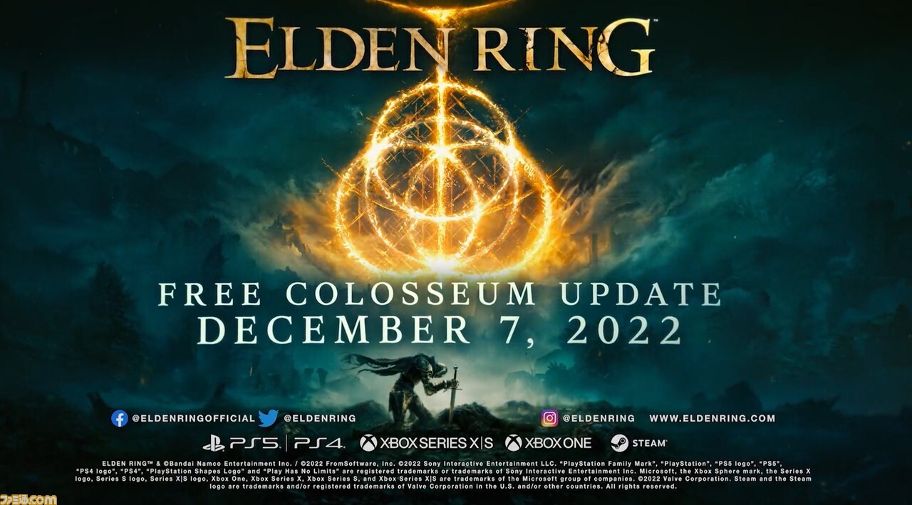 프롬 소프트웨어는 발매중인 ' 엘덴 링 '의 새로운 콘텐츠 '투기장'을 내일 2022년 12월 7일에 전달한다고 발표했다.