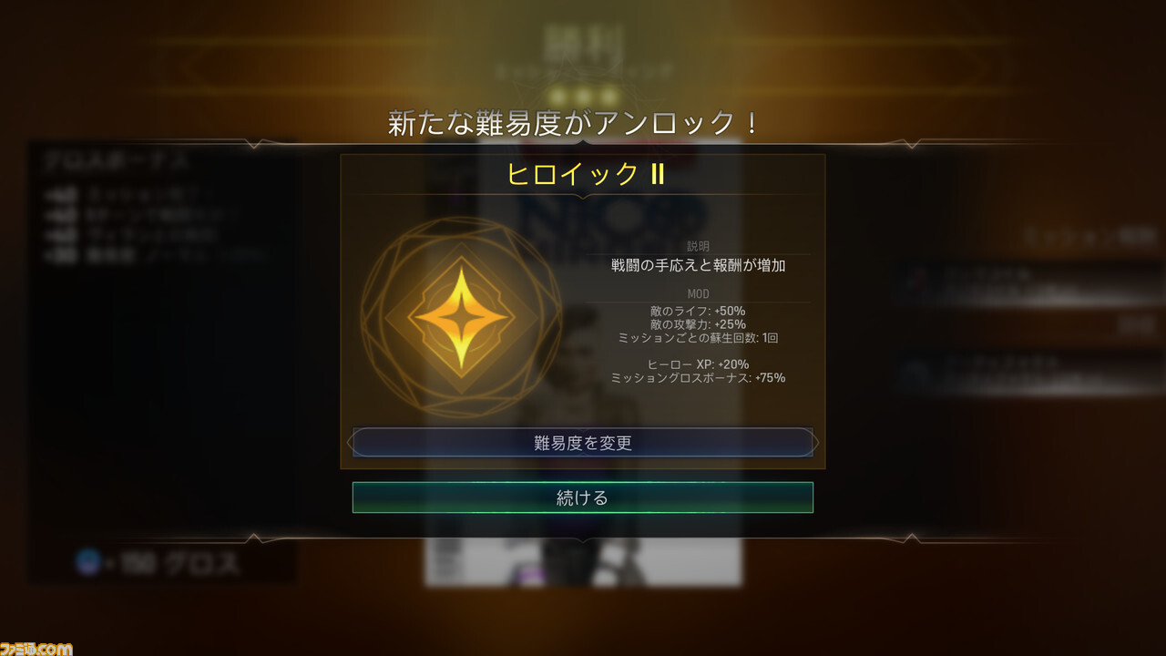 또한 게임의 난이도는 옵션 화면에서 출격 전에 변경이 가능. 고난도로 할수록 얻을 수 있는 보상 등도 늘어나므로, 때로는 고난도에 도전해 보는 것도 재미있을까 생각한다.