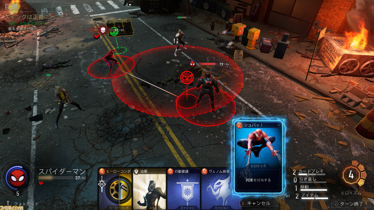 헌터로서의 몰입감이 끝나지 않는 교류 요소만으로도, 본작은 마블 히어로의 매력을 마음껏 전해 준다. 하지만, 히어로라고 하면 그 슈퍼 파워도 또 매력. 그것을 본작에서는, 배틀 씬으로 확실히 재현하고 있다.