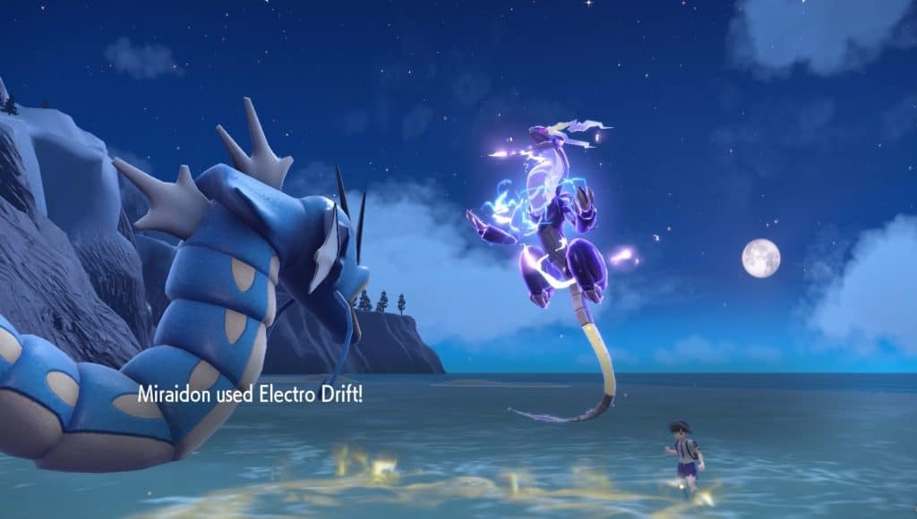 얼티밋 모드에서 Miraidon은 공중에 떠서 지상에 있는 적보다 유리한 위치를 유지합니다. 발톱과 송곳니 공격은 전하를 띠며 미라이돈이 꼬리를 내리칠 때 내부 장기에서 생성된 에너지를 사용하여 가장 강한 적도 한 방에 쓰러뜨릴 수 있습니다.