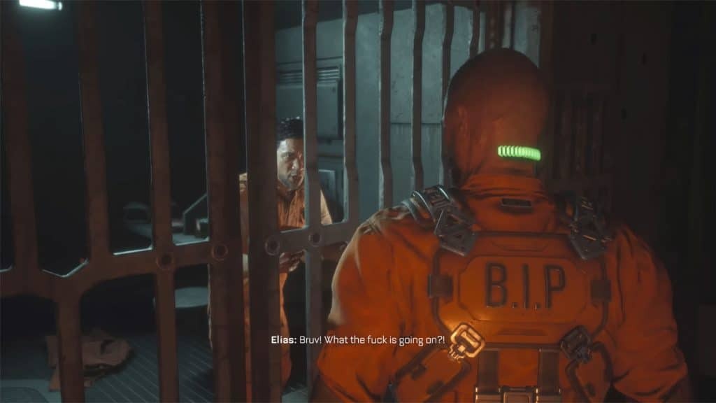 복도를 통과하면 Elias가 보안 장치가 다시 온라인 상태라는 경고를 받고 보안 장치가 두 명의 수감자를 살해하는 장면이 이어집니다. 다음 부분은 보안 유닛을 지나 이동하려고 시도하는 스텔스 미션이 됩니다. 몸을 웅크리고 자세를 낮추고 어느 부분이 안전하지 않은지 확인하기 위해 스포트라이트가 가리키는 위치에 주의를 기울이십시오.