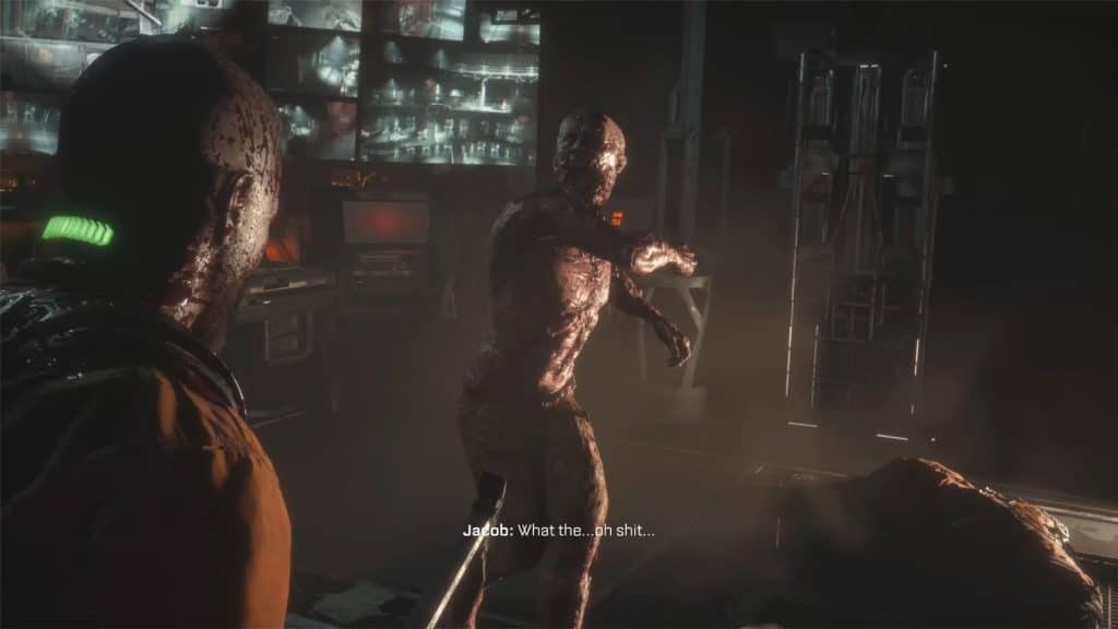 Outbreak 는 Jacob이 아직 알려지지 않은 이유로 Black Iron Prison에 보내진 후의 이야기를 따르는 Callisto Protocol의 두 번째 장입니다. 임플란트를 받고 회복된 직후, 그는 수감자와 경비원을 감염시켜 굶주린 괴물로 만든 바이오파지에 의해 교도소 시설 전체가 혼란에 빠진 것을 발견합니다.