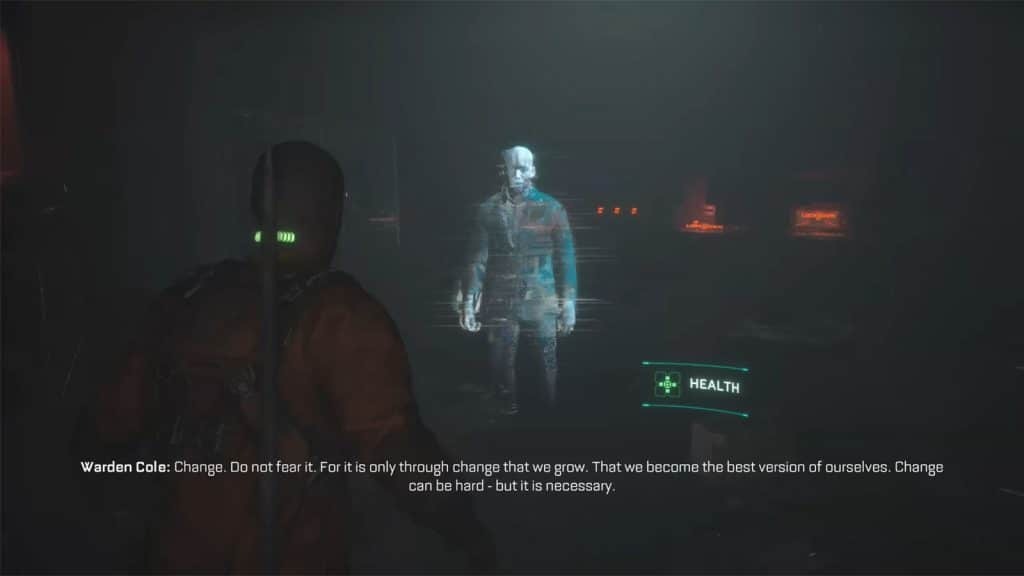 메자닌 층으로 가는 왼쪽 계단으로 계속 이동하고 패널의 게이트 퓨즈를 사용하여 문을 엽니다. 다음 복도는 불길에 휩싸이고 불타는 꿀꿀 거리는 소리가 당신을 향해 달려올 것입니다. 그것을 잘 돌보고 왼쪽 문으로 계속 내려가서 통로 끝에 있는 다른 문으로 내려갑니다. 약간의 크레딧과 건강젤이 들어있는 옆방에서 확인할 수 있는 포인트가 있습니다. 그런 다음 Warden Cole의 또 다른 홀로그램을 만나게 됩니다.