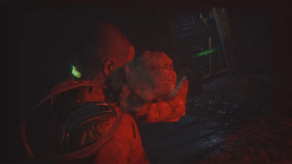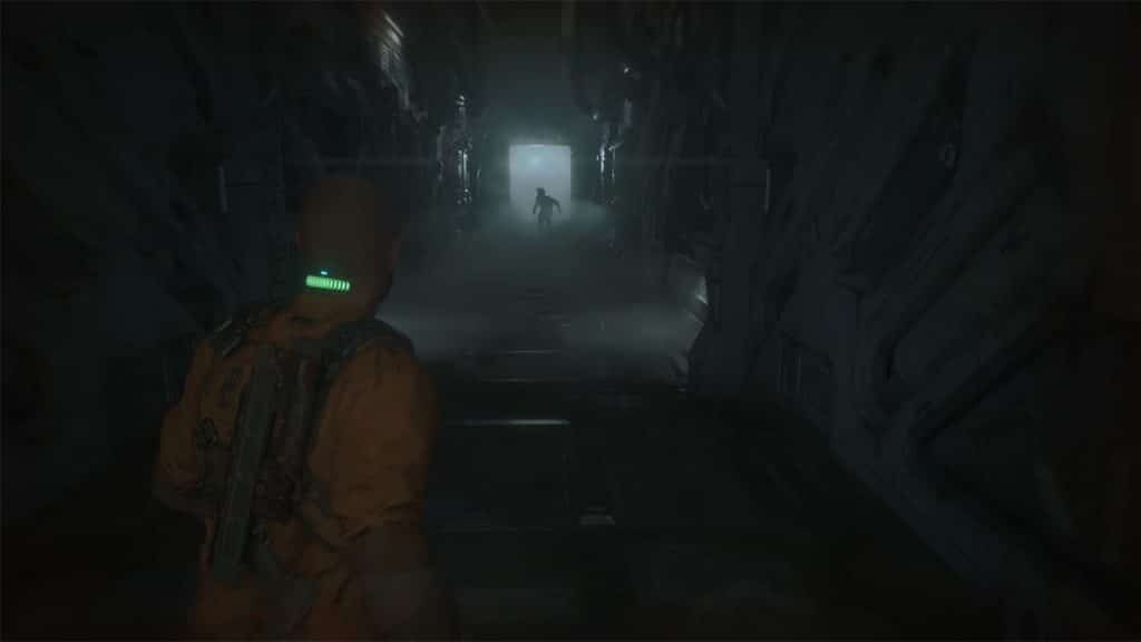 다시 내려가 엘리아스의 홀로그램이 통과한 문 근처의 크롤링 공간을 찾습니다. 통풍구는 어두운 방으로 연결됩니다. 맨 오른쪽 모서리에서 파란색으로 빛나는 것을 찾으십시오. 근처의 퓨즈 박스에 사용할 수 있는 퓨즈입니다.