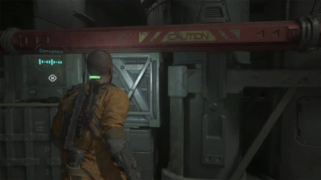 환풍구 밖으로 나오면 오른쪽에 있는 적에게 GRP를 사용할 준비를 하십시오. 근처에 걸 수 있는 벽 스파이크가 있습니다. 그런 다음 전리품이 있는 유리 캐비닛을 찾을 수 있는 근처의 사다리를 올라갑니다. 왼쪽으로 가서 상자를 타고 올라가 Data-Bios #13: Dr. Caitlyn Mahler: Corruptors on a crate under the red pipe를 얻을 수 있는 위쪽 플랫폼에 도달합니다.