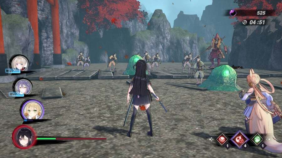이야기는 초커와 란제리 스타킹을 적절하게 차려입은 여고생 츠구미가 마왕을 만나러 간다는 '천사의 목소리'와 갑자기 접촉하는 것을 따릅니다. 그녀는 대부분 이것에 만족하지 못하고 즉시 센고쿠 시대로 이동합니다. 그곳에서 그녀는 불타고 있는 건물을 탈출하려고 하지만 언데드 사무라이 무리에게 공격을 받습니다. 이 게임은 모두 영어 자막과 함께 일본어로 음성이 나오며, 이는 바람직하며 모든 것이 절대적으로 환상적으로 보입니다. 텍스처와 환경은 경계를 허물고 있지는 않지만 그래픽 과잉에 대한 형태에 대해 스타일적으로 균형을 이루고 있습니다. 프레젠테이션은 최고 수준이며 도킹 모드와 핸드헬드 모드 모두에서 화면에 수많은 적과 모든 곳에서 타오르는 효과가 발생하는 경우에도 프레임 속도가 흔들리지 않는 지옥처럼 부드럽습니다.