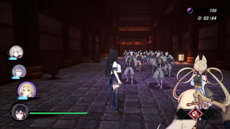 Samurai Maiden은 Dynasty Warriors 천 에서 잘라낸 기본적인 3D 핵 앤 슬래시 사건 이지만 약간의 깔끔한 각도가 있습니다(그리고 우리는 업스커트에 대해서만 이야기하는 것이 아닙니다). 플레이어 캐릭터 Tsurugi는 다양한 기술을 가진 세 명의 다른 처녀의 도움을 받습니다. 초기 수련 단계가 끝나면 미션을 통해 순차적으로 다른 처녀들을 잠금 해제합니다. 이 조수들은 화면에서 당신을 따라다니며 게이지가 'A' 버튼 탭으로 채워지면 특수 공격을 펼칠 수 있습니다. 이들은 완벽하지 않고 당신의 시선을 따라가는 경향이 있지만 보스를 기절시킬 만큼 강력합니다. 그들에게 누워 몇 초를 사십시오.