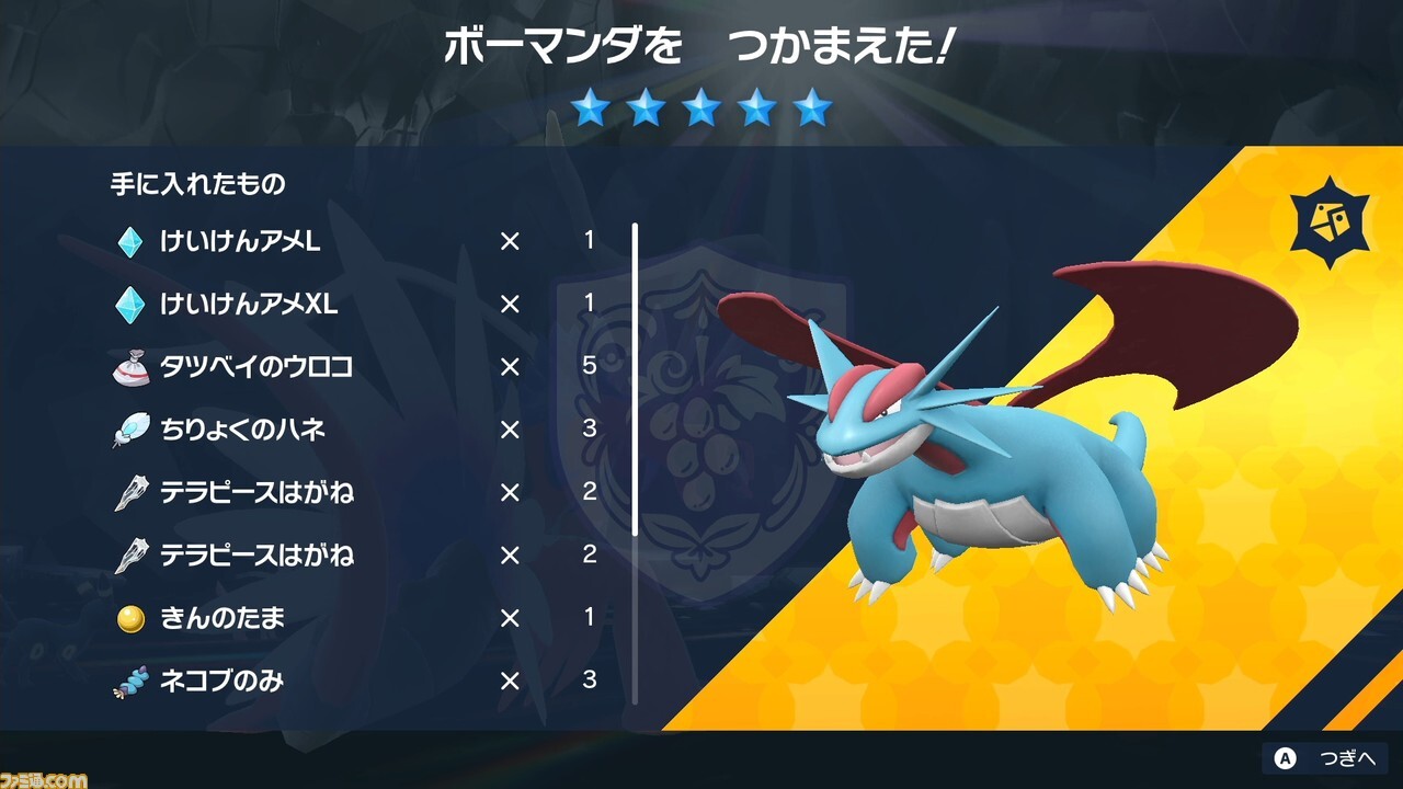 히코 타입도 이번 이벤트에서 손에 넣어두고 싶은 곳. 라고 하는 것도, 타츠베이는 드래곤 타입이므로 보만다를 타마고에서 기르면 테라스 타입은 반드시 드래곤 타입이 된다.