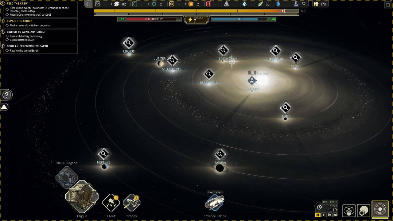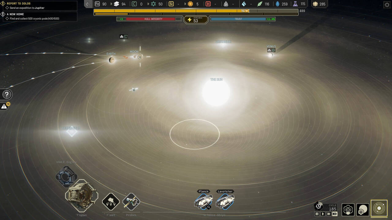 과학선이 화성에서 완성되자마자 금성으로 보내세요. 그것은 우리의 목표를 향해 가고 있으며, 우리는 그것을 지금 움직이게 하는 것이 좋을 것입니다. 우리는 항상 시간을 지키고 있습니다. Hull은 지속적으로 고갈되고 있으며 해당 지역에는 자원이 너무 많습니다.