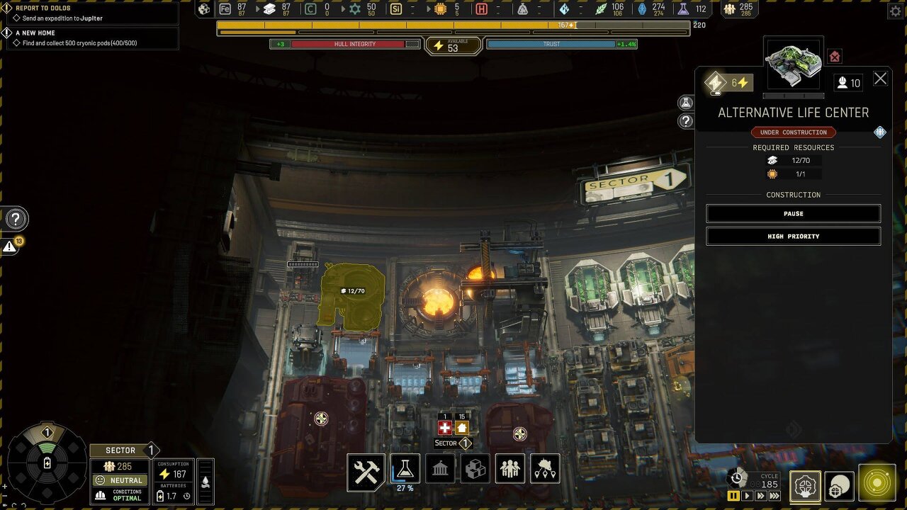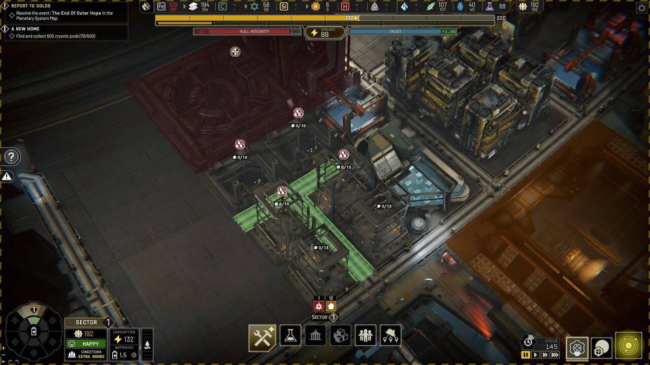 이 큰 건물 프로젝트가 진행되는 동안 인구를 계속 주시하고 싶을 것입니다. 위에 표시된 변경 사항은 지금까지 내 지시를 따랐다면 섹터 1에서 절대 최대 인구 390명을 제공할 것입니다.