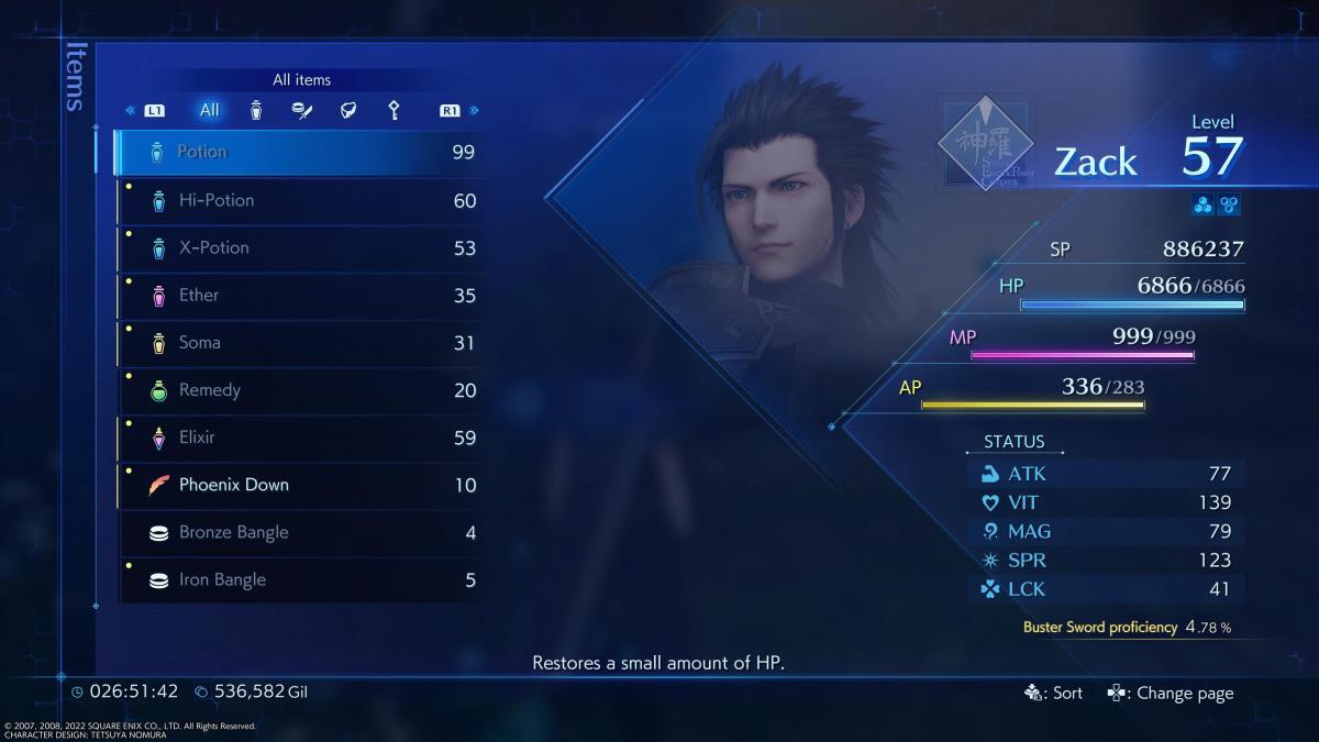 이것은 가장 귀중한 Crisis Core FF7 Reunion 초보자 팁 중 하나일 수 있지만, 저와 같다면 이 팁을 완전히 무시하고 어쨌든 아이템 수집가가 될 수 있습니다. 그럼에도 불구하고 Crisis Core Reunion 에는 치유 아이템이 매우 풍부하며 게임이 끝날 때까지 큰 소란없이 대부분의 치유 아이템을 구입할 수 있습니다. 별 이유 없이 엘릭서 20개 를 보상으로 주는 일상적인 임무가 있습니다 .