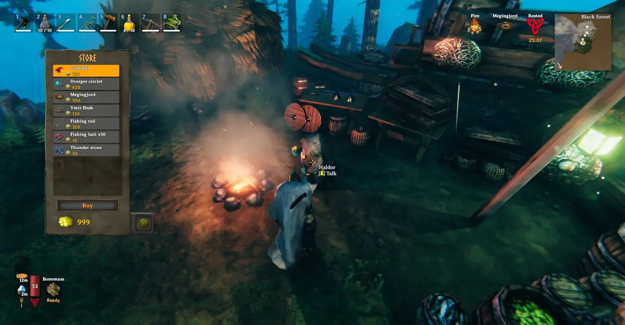 이제 낚싯대, 미끼, 스태미나 음식이 준비되었으니 낚시를 시작할 준비가 되었습니다! Mistlands 업데이트부터 Haldor에서 교환한 미끼는 모든 유형의 물고기를 잡을 수 없으므로 Meadows 생물 군계에서 시작해야 합니다.