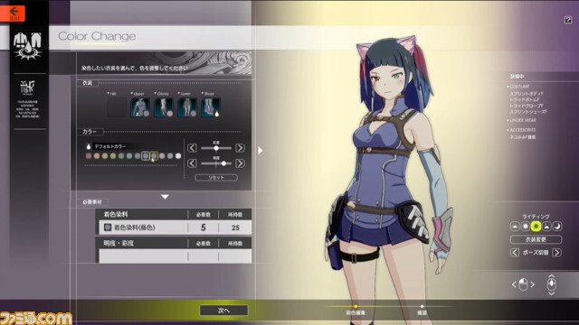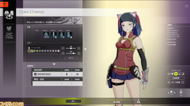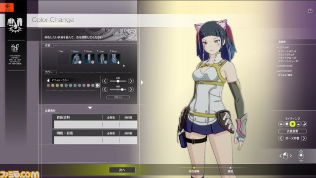 칼라 변경할 수 있는 의상과 할 수 없는 의상이 존재하고, 또 염색제의 일부 칼라는 과금 아이템이지만, 이벤트 등으로 배포를 예정하고 있다고 한다.