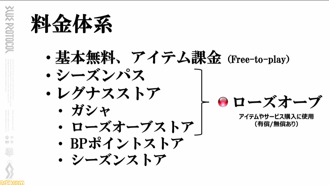 요금 체계에 관해서, 본작은 기본 무료의 아이템 과금(F2P, 프리 투 플레이)이 되어, 판매를 하는 아이템이나 기능은, 바리에이션이나 외관의 풍부함을 늘리는 것과 게임 컨텐츠의 시간 단축을 하는 것이 베이스로 되어 있다는 것.
