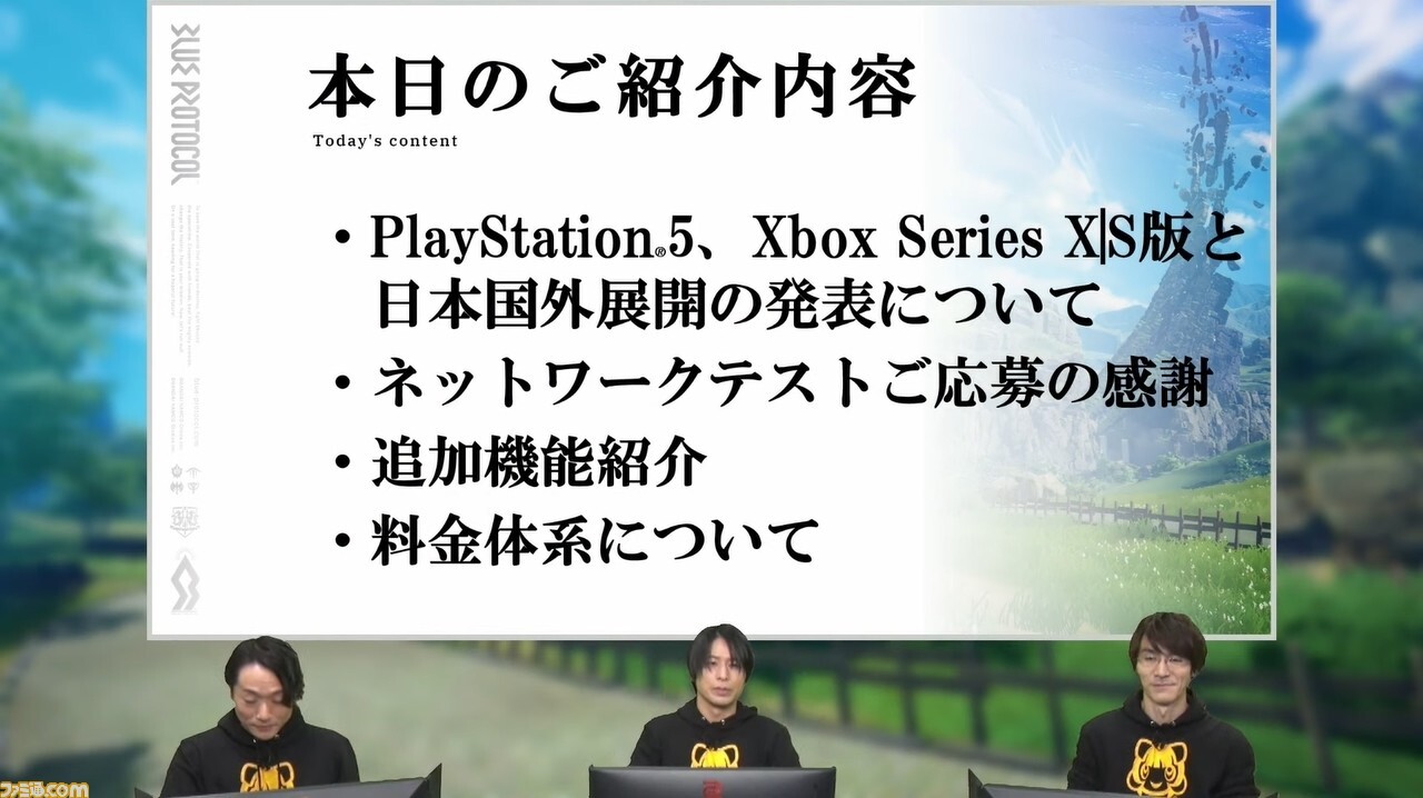 반다이 남코 온라인과 반다이 남코 스튜디오가 개발중인 신작 온라인 RPG " 블루 프로토콜 ". 2022년 12월 15일 20시부터 본작의 공식 프로그램 '불프로 통신#6'이 전달되어 PC판이나 CS판의 릴리스 타이밍이나 요금 체계, 미발표의 콘텐츠 등의 최신 정보가 발표되었다.