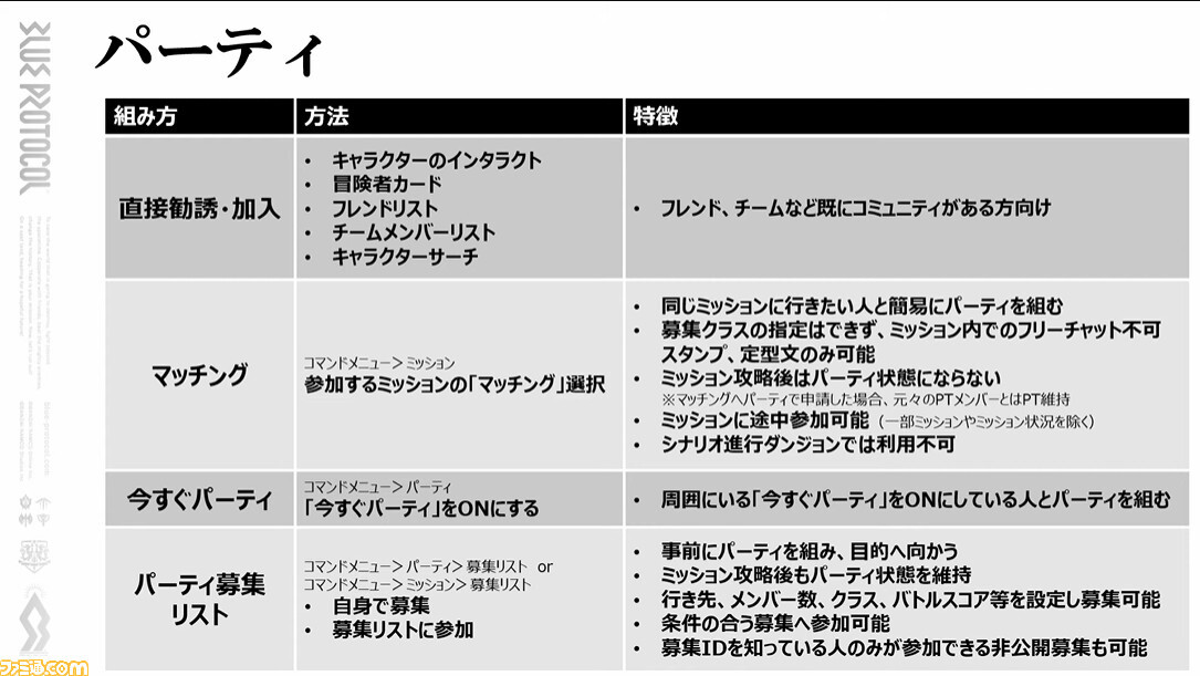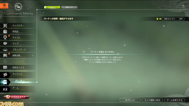 지금 파티 온으로 하는 것으로, 마찬가지로 이 기능을 온 하고 있는 근처의 플레이어와 자동적으로 파티를 짜는 것이 가능하다. 본작은 파티를 짤 때의 메리트가 많이 있으므로, 부담없이 파티에 참가해 주었으면 한다는 것.