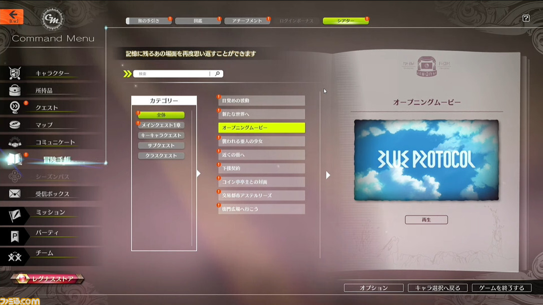 과거에 본 적이 있는 데모 장면을 보상할 수 있는 기능. 현재 자신의 캐릭터의 외모로 재생된다.