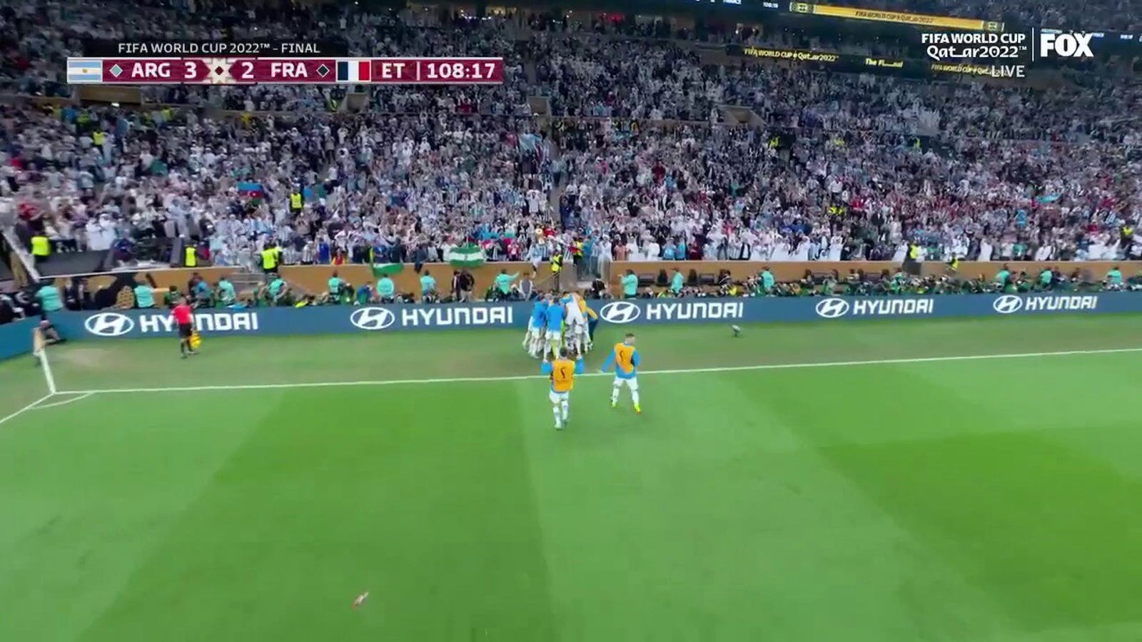 연장전이 3-3으로 끝난 후 승부차기에서 메시는 아르헨티나의 첫 번째 슛을 전환했고 골키퍼 에미 마르티네즈 는 다시 한 번 영웅이 되어 아우렐리앙 추아메니 가 실축하기 전에 킹슬리 코망 의 킥을 막아냈고 마침내 곤살로 몬티엘 이 남미를 위해 봉인했습니다. , 4-2.