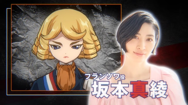 점프 페스타 2023에서 선보인 닥터 스톤 예고편 은 세 번째 시즌이 나오거나 2023년 4월에 공개될 것임을 밝히는 것과 함께 프랑수아라는 캐릭터도 소개했습니다. '애니' 닥터 스톤 의 새 시즌(3)에서 데뷔하는 이 캐릭터는 사카모토 마야가 연기한다.