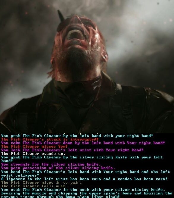 기본 부분이자 게임의 주요 초점 중 하나로 간주할 수 있는 싸움은 몇 초 만에 시작하고 끝낼 수 있습니다. 당신이 "드워프" 라고 말하기도 전에 , 산에서 내려온 악마 생물은 이미 당신의 전설적인 목수의 양손을 절단 한 다음 도시 민병대의 창에 압도되어 입구의 벽을 토사물로 흠뻑 적시고 있습니다. 실화 허). 한편, 공격, 회피, 메스꺼움 및 부상에 대해 자세히 설명하는 이 리뷰보다 훨씬 더 긴 이야기가 생성 되었지만 플레이어로서 여러분이 본 것은 스프라이트 덩어리 가 몇 프레임 동안 서로 닿았 다가 도망가는 것뿐이었습니다.