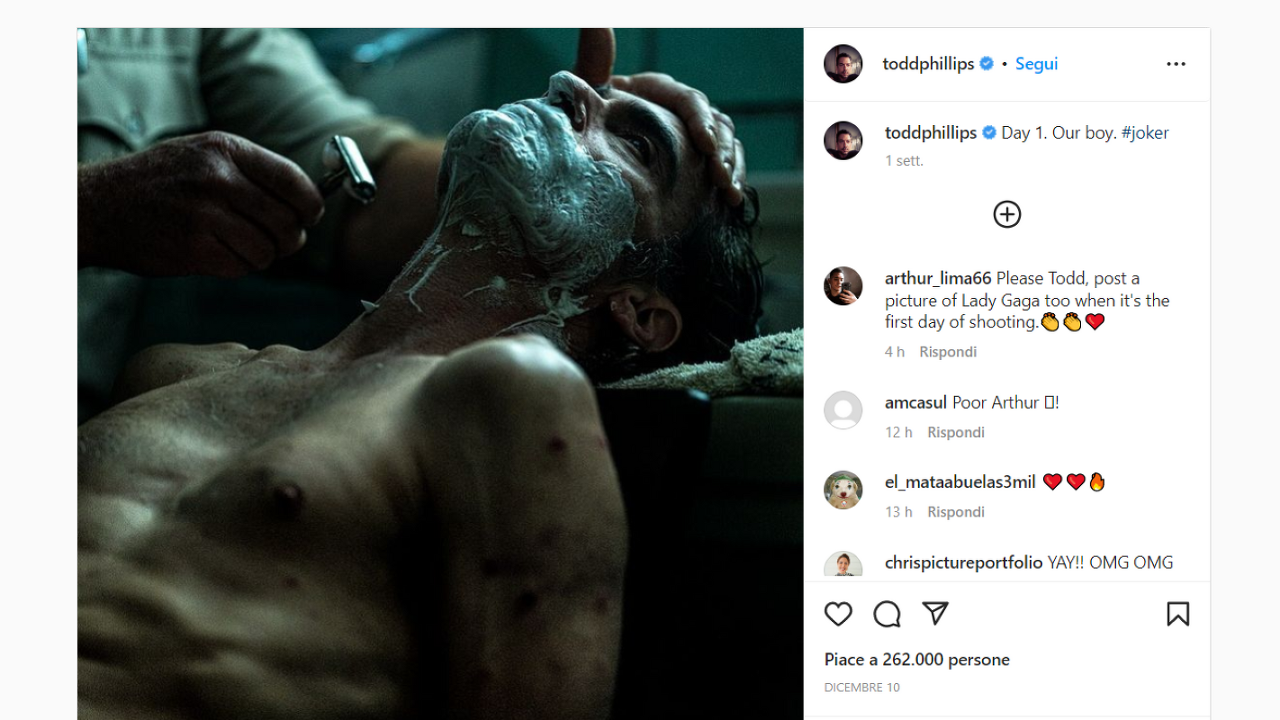 아직 레이디 가가의 촬영장 공식 사진이 없기 때문에 토드 필립스 감독의 인스타그램 프로필에 올린 글로 위로를 드립니다. 며칠 전 그는 Joker 세트에서 바로 Joaquin Phoenix를 묘사하는 아름다운 이미지를 제공했습니다. 우리는 이 속편이 전작과 같은 블록버스터가 될지 플롭이 될지 기다리기만 하면 됩니다.