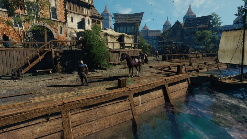보다 활기찬 세계에 대해 말하면서 우리는 의심할 여지 없이 도시 거리를 걷는 사람들의 수의 증가를 언급해야 하며 Novigrad를 확실히 더 상세한 구조와 거리를 가진 진정한 환상의 대도시로 만듭니다. 실제로 질감의 개선은 막간 장면 뿐만 아니라 플레이할 때에도 그림자가 사실적인 Geralt 및 기타 주인공뿐만 아니라 건물 및 지형의 렌더링을 상당히 향상시킵니다 . 그러나 이들조차도 캐릭터의 기술적 발전과 몰입형 실시간 컷신 수정의 편법 덕분에 개선되었습니다.