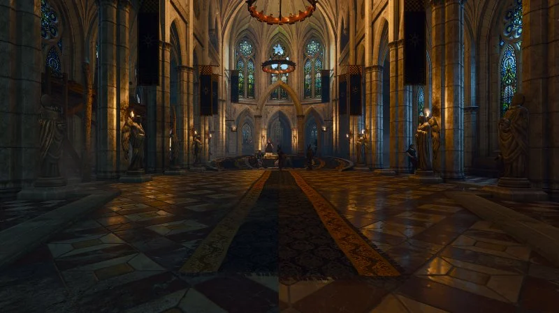 PC 버전의 이점을 위해 우리는 RT Ultra 모드의 설정 덕분에 레이 트레이싱의 보다 인상적인 사용과 현실감의 증가를 모두 발견했습니다. 수많은 모델과 게임 요소 중에서 게임 세계를 채우는 캐릭터의 수, 잔디의 밀도, 잎사귀의 시야 거리 및 전반적인 세부 수준을 더 높일 수 있도록 함으로써 더 많은 일을 할 수 있습니다.