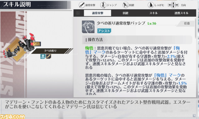 임의의 무기 스킬 또는 연계를 발동하면 수호의 수에 따라 최종 데미지와 회복 효과가 UP한다.