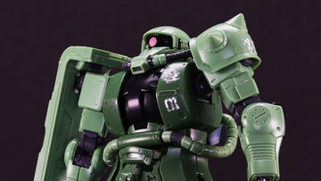 작화 붕괴라고 계속 말해진 TV판의 자쿠를 어떻게 설득력을 가지고 건프라화하는 것인가… … 카토키 하지메씨는 영화가 된다는 것으로 설정으로부터 브러쉬 업. 탈주병이 된 도안이 잠복처의 장비 등을 사용하여 "스스로 유지 보수했다"는 설정을 덧붙여 과연 개인의 유지 보수로는 완전히 미치지 않을 것이다 ...... 정상적인 형태가 아닌 "이형 ”의 자쿠로서 작화 붕괴마저도 공식화해 버렸습니다.