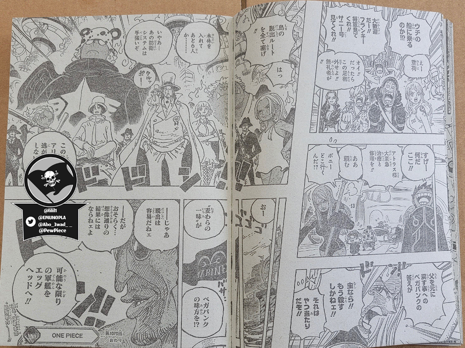 세계 정부는 Vegapunk를 침묵시키고 싶어 CP0을 보냈습니다. 그러나 Rob Lucci 가 관여한 충돌은 그의 예상을 뛰어넘어 이미지가 포함 된 ONE PIECE 1070의 스포일러는 여전히 그를 불리하게 봅니다. "The Strongest Humans"라는 제목의 챕터는 다섯 명의 개인과 Vegapunk를 중심으로 과거 MADS의 사진으로 시작됩니다.
