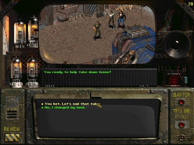 여기는 기즈모 카지노입니다.들어가서 실패한 암살에 대해 뚱보에게 말하고 기즈모에게 그 일을 하고 싶다고 말해그는 부정하겠지만, 계속 그를 압박하면 그는 당신을 다시 킬리언으로 고용할 것입니다.그냥 "오, 내가 널 속일 수 있어..."를 선택하지 마아무도 네 주변에 둘 수 없어" lmao 기즈모 고해성사를 받으면 킬리언으로 돌아가라.자백받았다고 해 기즈모를 죽이도록 도와주겠다고 해보상으로 난 산탄총과 포탄이 더 좋아남쪽으로 정크타운 입구로 가서 경비원에게 준비됐다고 말해라. 킬리언, 이안, 경비대와 함께 기즈모 사무실로 순간 이송될 것이다.기즈모는 1명의 가드를 두게 되고 그는 터프한 가드를 두게 되지만, 이안과 친근한 가드의 불은 대부분 그에게 쏠 것이다.기즈모에 집중해 기즈모가 죽으면 당신은 마을 앞으로 다시 이송될 것이다.LOOOOOOOT를 위해 gizmo 사무실로 돌아가세요.