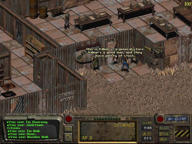 - 시내 북쪽에서 다음 구역으로 가세요, 여기는 잡화점 구역입니다.잡화점 안으로 들어가 킬리안 다크워터와 대화해야 합니다.네 이름과 출신지를 말해라. 레이더와 거래할 게 많으니까.황무지의 다른 곳에 대해 물어봐
