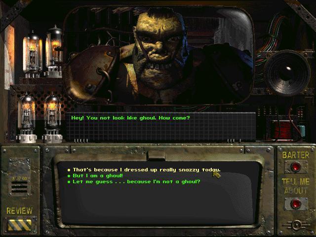 - Far Go Traders로 돌아가서 Butch에게 슈퍼 뮤턴트 때문에 카라반이 사라졌다고 말해라. 바보 같은 짓을 할 거야.현상금을 받으러 러거와 대화하고,이 인간을인질로 잡고증거를 가지고 있다고 전해야 합니다.