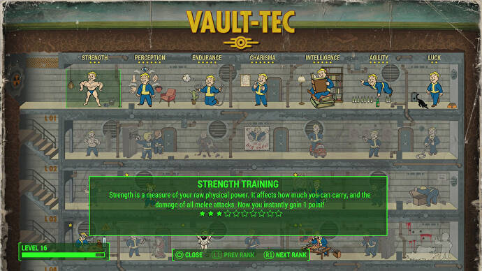 또한 위의 범주 중 어느 것도 그 자체로 특전이 아님을 알아야 합니다. 이것들은 당신의 속성이지만, 당신이 한 범주 또는 다른 범주에서 더 강할수록 당신이 선택하고 혜택을 받을 수 있는 특전이 더 많아집니다. 예를 들어 Vault-Tec 친구에게 Strength 5가 되고 싶다고 말하면 Strength Level 05에서 제공되는 특전을 장착할 수 있습니다.